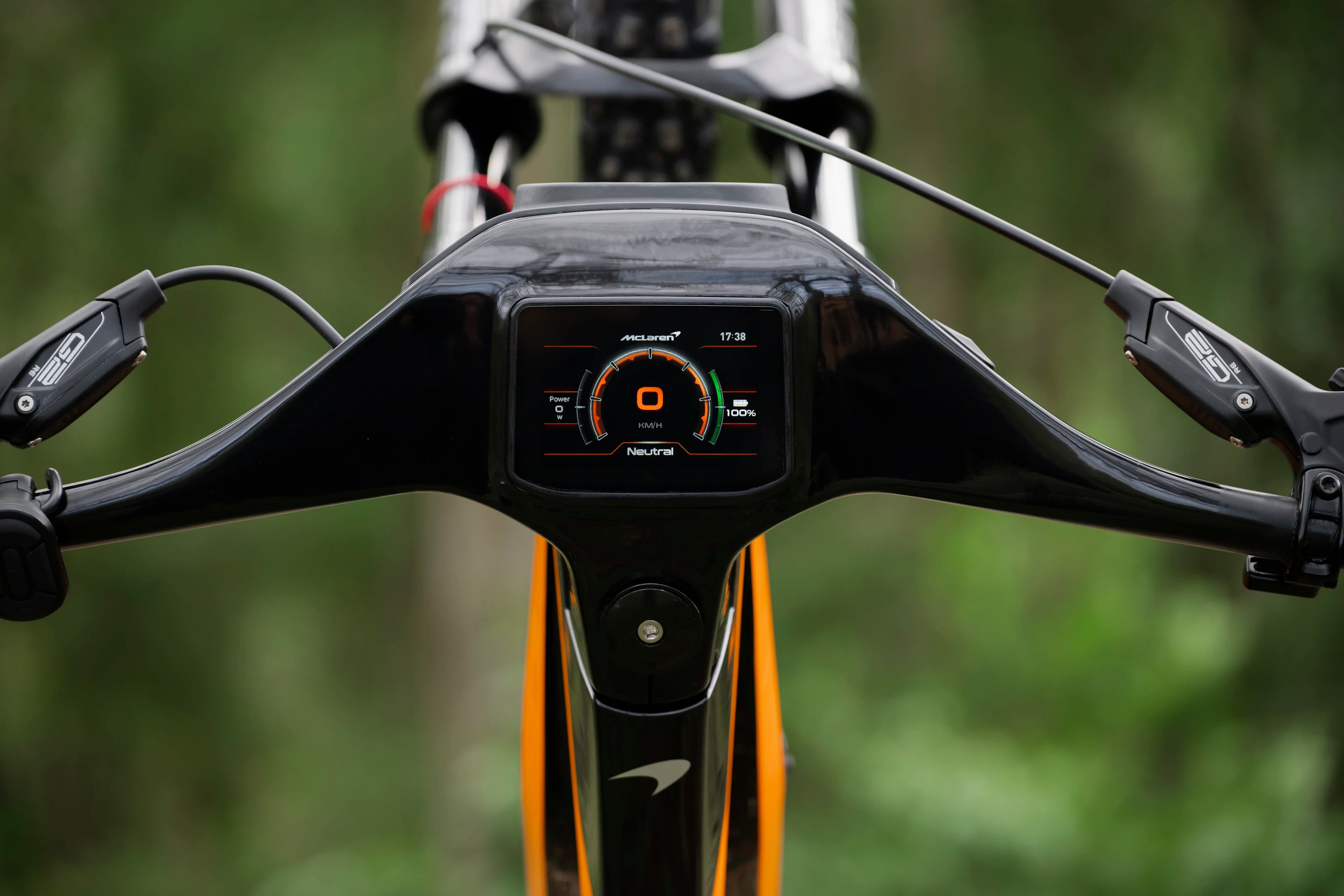 The carbon fiber chassis blends aggressive eMTB handling with the McLaren design language. Stunning to look at and a blast to ride.